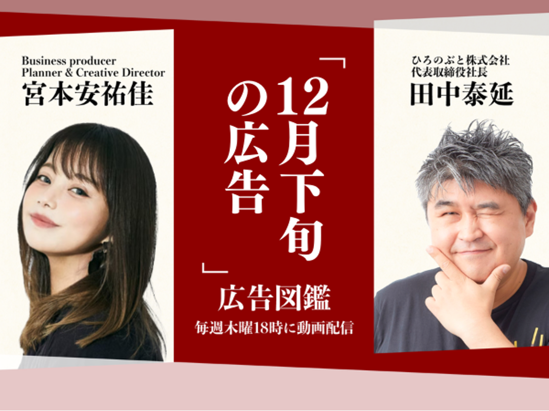 「GOOD INNOVATION LAB」で毎週木曜日18時に配信されている動画コンテンツ『広告図鑑』。ビジネスプロデューサーの宮本安祐佳さんとコピーライターの田中泰延が、さまざまな広告を紹介しています。