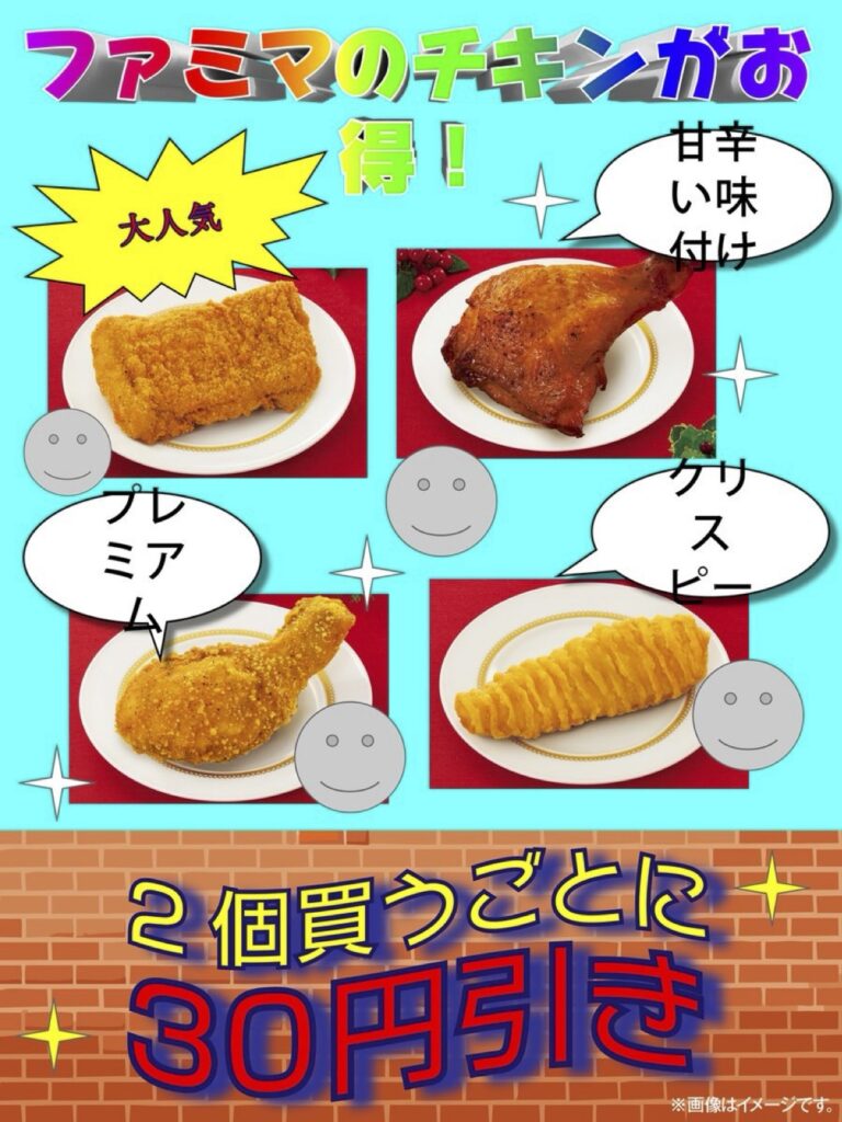 店頭のチキンを告知するポスターの制作を依頼されたであろうデザイナーが、チキンの美味しさに釣られて業務を放棄してしまったため、素人が、おそらくWordで制作したポスターを作って掲示する羽目になってしまった、という投稿です。