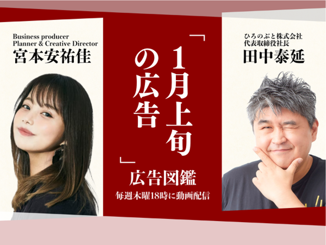 「GOOD INNOVATION LAB」で毎週木曜日18時に配信されている動画コンテンツ『広告図鑑』。ビジネスプロデューサーの宮本安祐佳さんとコピーライターの田中泰延が、さまざまな広告を紹介しています。