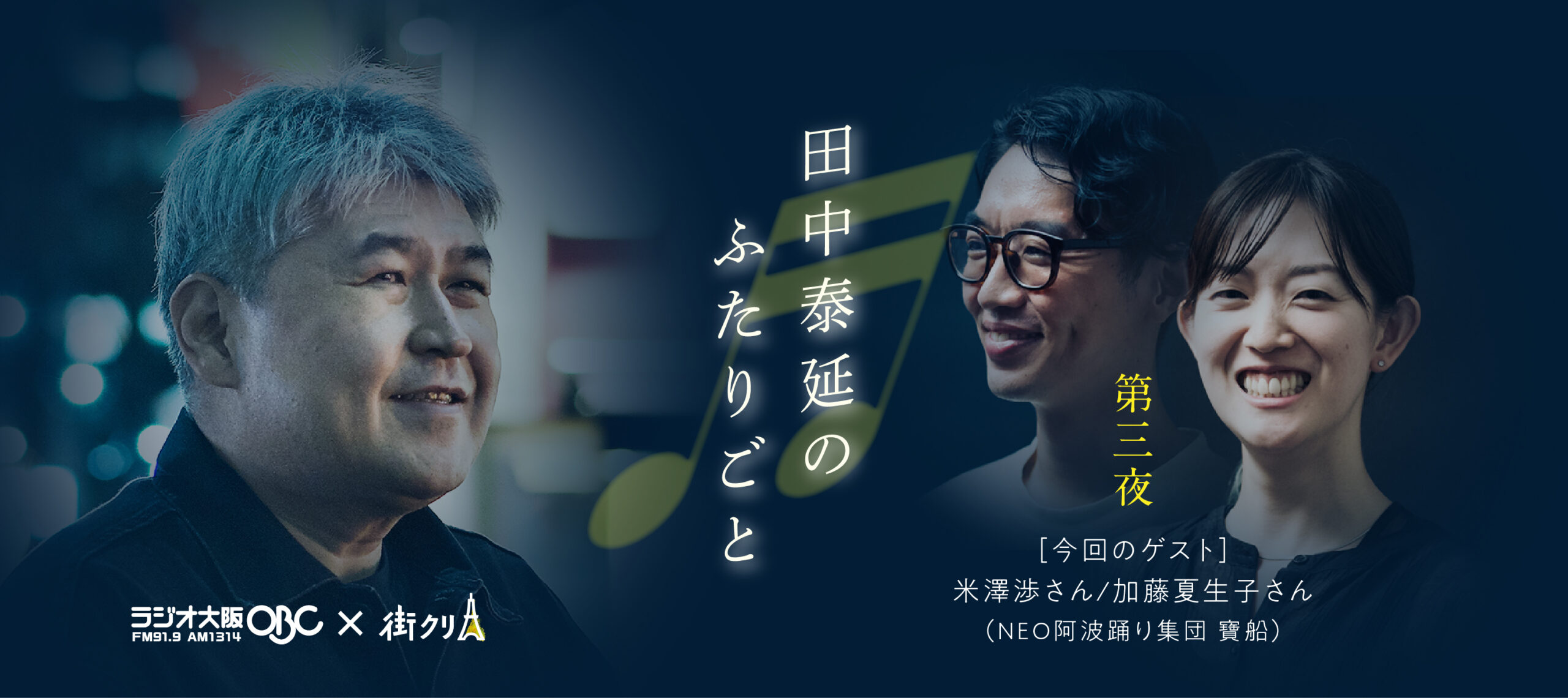 今日お迎えするゲストは、NEO阿波踊り集団「寶船」のリーダーで、株式会社アプチーズ代表取締役の米澤渉さん。そして、寶船のメンバーで、なんと米澤渉さんの弟さんでいらっしゃいます、米澤陸さんのお二方です。