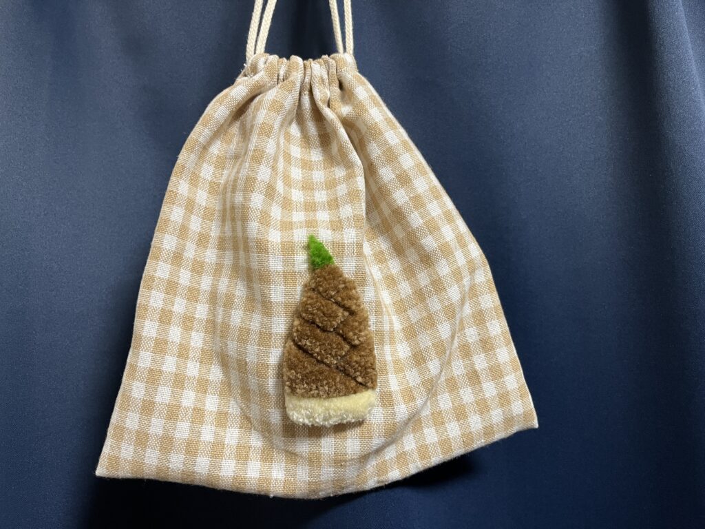 こちらはがんばって巾着袋にしたタケノコのモチーフです。