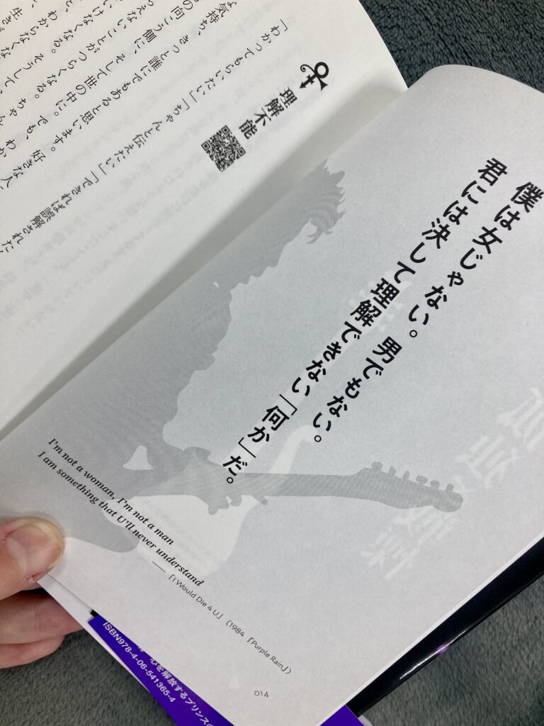 一篇一篇の最初に、プリンスの歌詞の引用や名言が置かれている。そして、見出しの下には二次元コード。読み取ると、飛び先はYouTube。プリンスの楽曲がかかる。