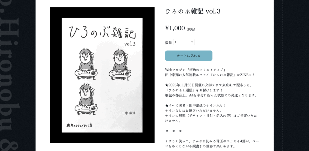そうして、文学フリマ東京41の終了後にオンラインストアで販売を開始した『ひろのぶ雑記 vol.3』をさっそくご注文くださった皆様。