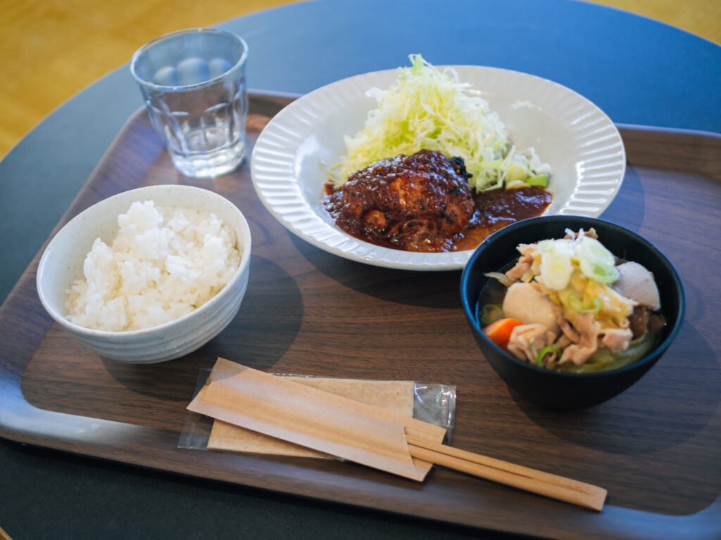 豚肉100%の「トンバーグ」か、豚汁の「ジャパン」か悩みに悩んで、「トンバーグ」を食べることにしました。よく考えてみたら、「トンバーグ」には小さな豚汁もついていました。