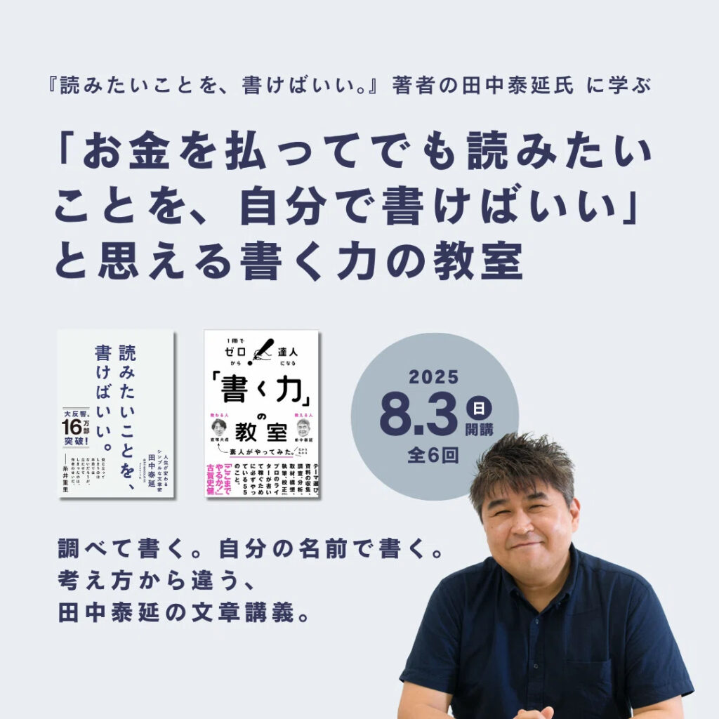 「お金を払ってでも読みたいことを、自分で書けばいいと思える書く力の教室」