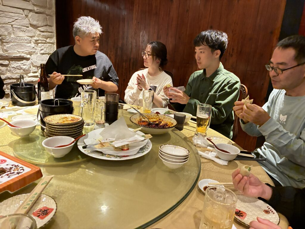 まあるいテーブルを回して、