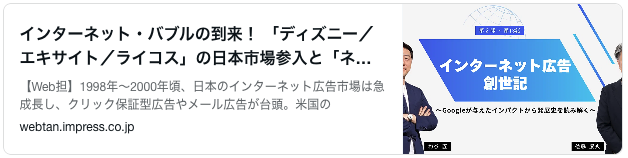 一昨年9月から参加してたプロジェクトである杓谷匠さん著作『インターネット広告創世記』が web担当者forum での長期連載を経て完結しました。僕は第8話〜33話で登場しています。同サイト運営のインプレスの発刊によってこの夏、書籍化されます。楽しみです。