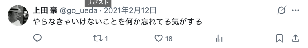 去年のこの日はこれしかツイートしていない。おそらく確定申告の作業に追われていたはず。