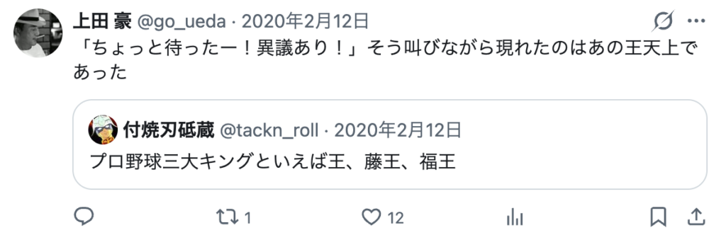 そこで久しぶりにTwitterという名の俺の日記帳を開き、2月12日を振り返ろうと思う。