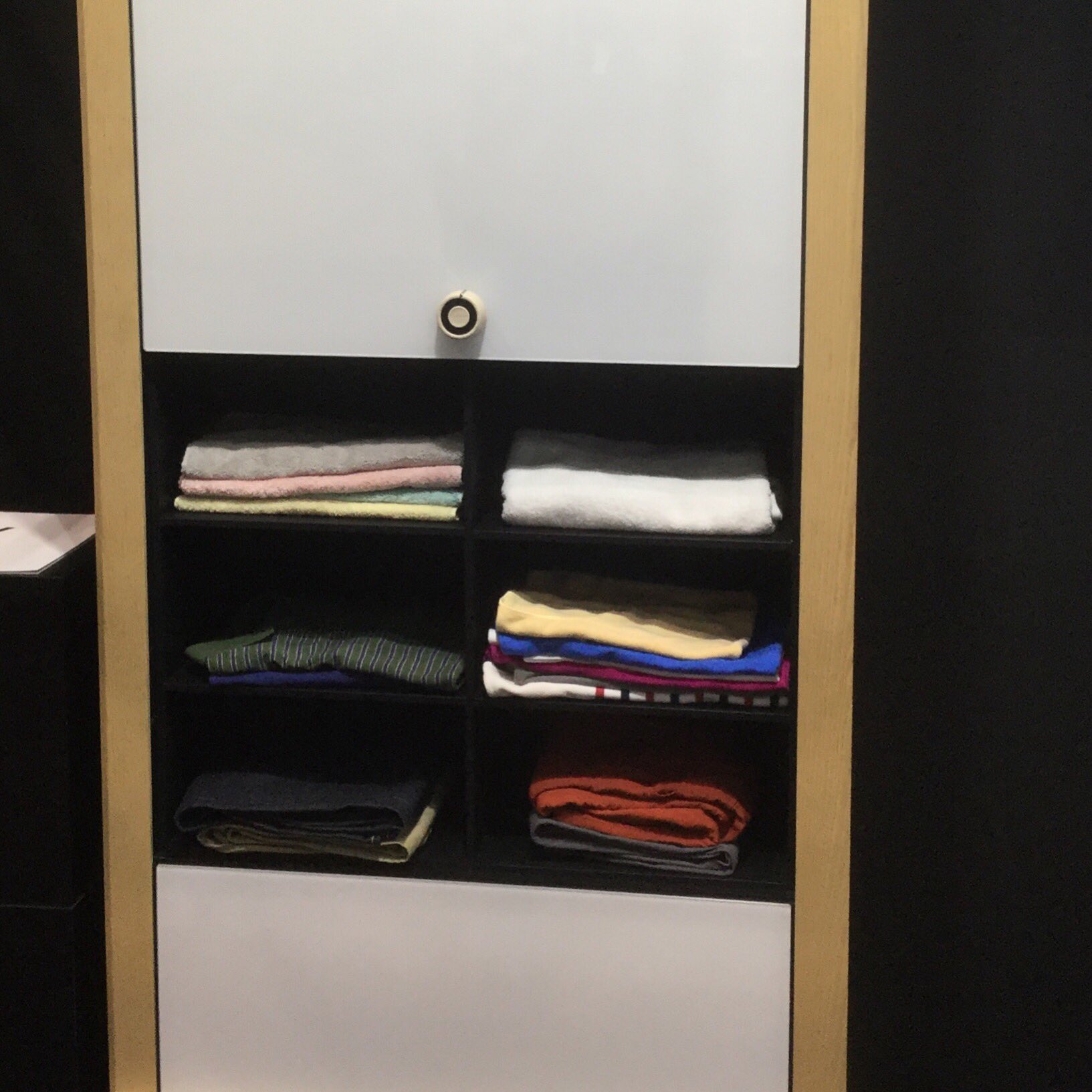 この機械の最下部に乾いた洗濯物を入れると、最先端のセンサー技術とロボットアーム技術を駆使して、数分後には写真のように綺麗に畳まれて出てくる。