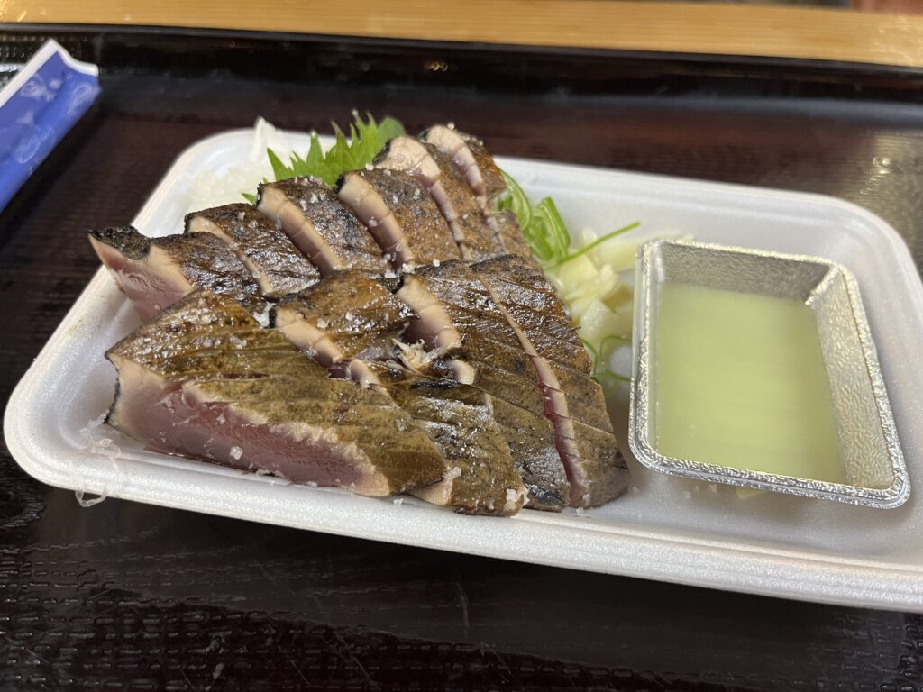ひろめ市場で食べたかつおのたたき、おいしかったです