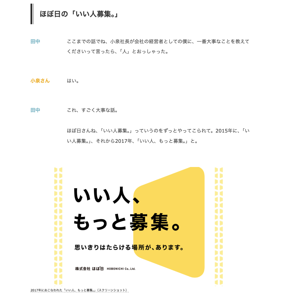 たとえば、1月に出演いただいたほぼ日さん。「いい人募集。」についてをトピックに上げました。