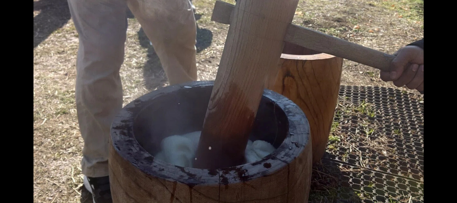 職人の中には、十数年前にタイから来たソム君という若者がいて、今ではすっかり餅つきマスターになっているらしい。