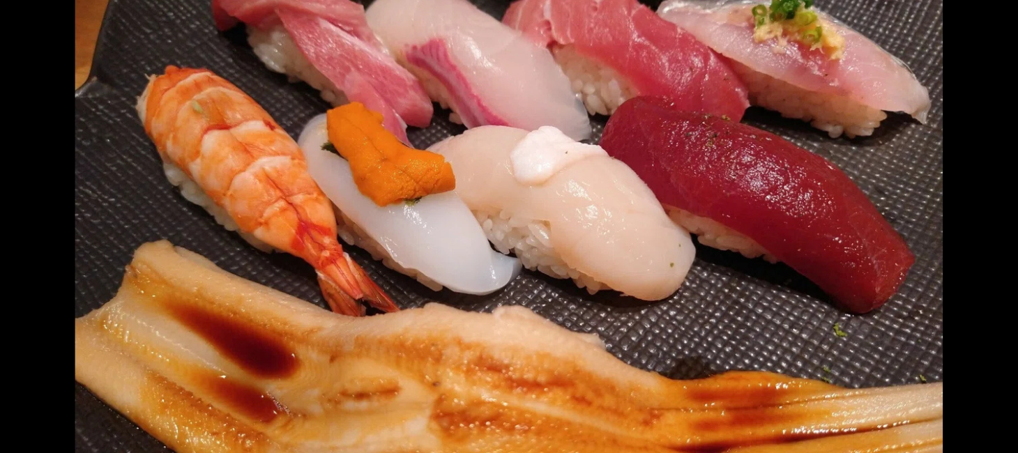法被を着た陽気な店主が随分な時間をかけて握り、次々に来る寿司は見たことのない、ある意味“新鮮な”スシばかりだった。