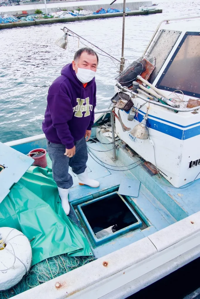 嫁も寒うて震えよるじゃろ。夫婦で船乗って漁しよるけ、それで翌朝の気温の予想が−2度で、注文してきた人には「今日は獲れんかった」って。しょうがないんですよ、1年に2、3回は、たった1匹が獲れん日がある。