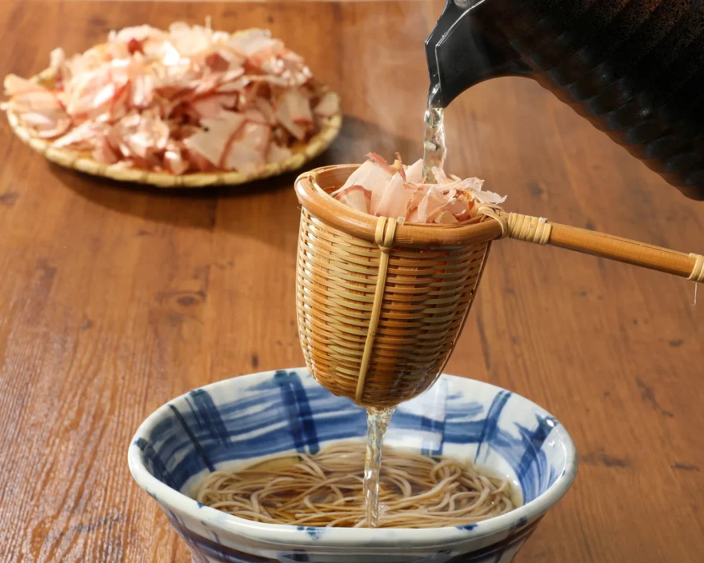 それで、鰹の出汁をね、お店でもう一回取りはるんですよね。どんぶりの上で。